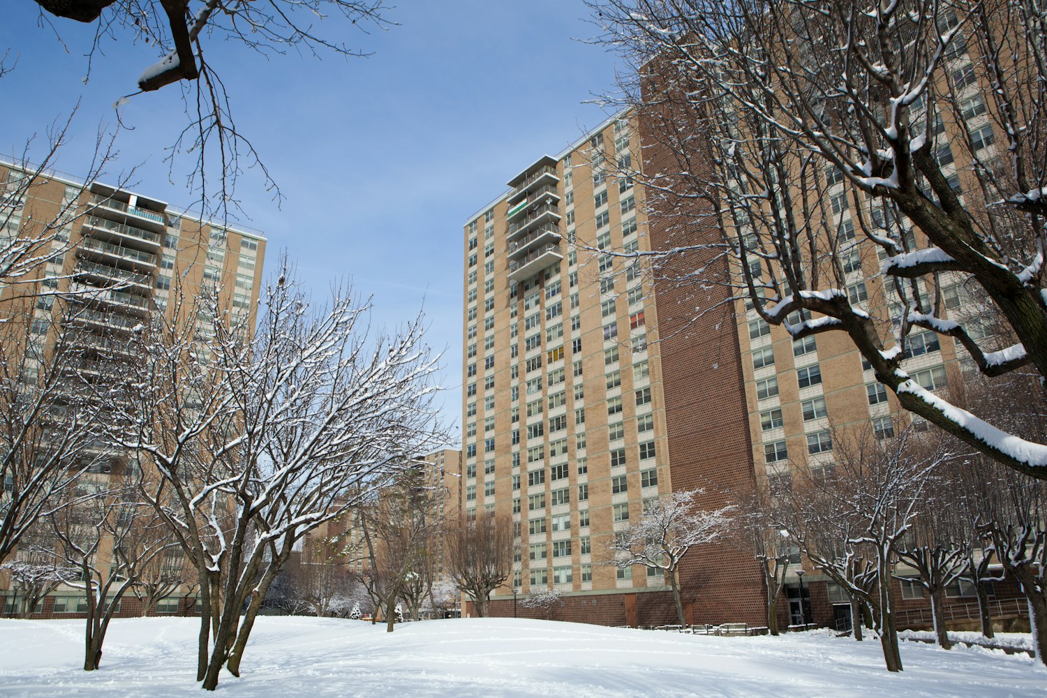 When visiting the development, it is possible to walk around the 153-acre site and observe how Starrett’s staff manages and maintains the complex from day to day. Bucking the popular image of tower-in-the-park complexes, which are often seen as undesirable or in a state of disrepair, Starrett feels beloved and well taken care of. By 9 a.m., the snow from previous night’s snowfall has already been cleared away by the building staff. Starrett’s residential and commercial buildings are heated by a private cogeneration plant, independent from Con Edison, located on the far eastern side of the development. The site is punctuated by playgrounds, some older, others more recent, like a toddler-targeted play area built a few years ago at the request of the tenant association. There is a 100,000-square-foot health and fitness center on the grounds, which includes a competition-sized pool. There are also three public schools on Starrett’s grounds. The management company, parents, and schools collaborate on after-school programming and activities, which include the Starrett Judo Club, a teen center, and an orchestra program, among many others.