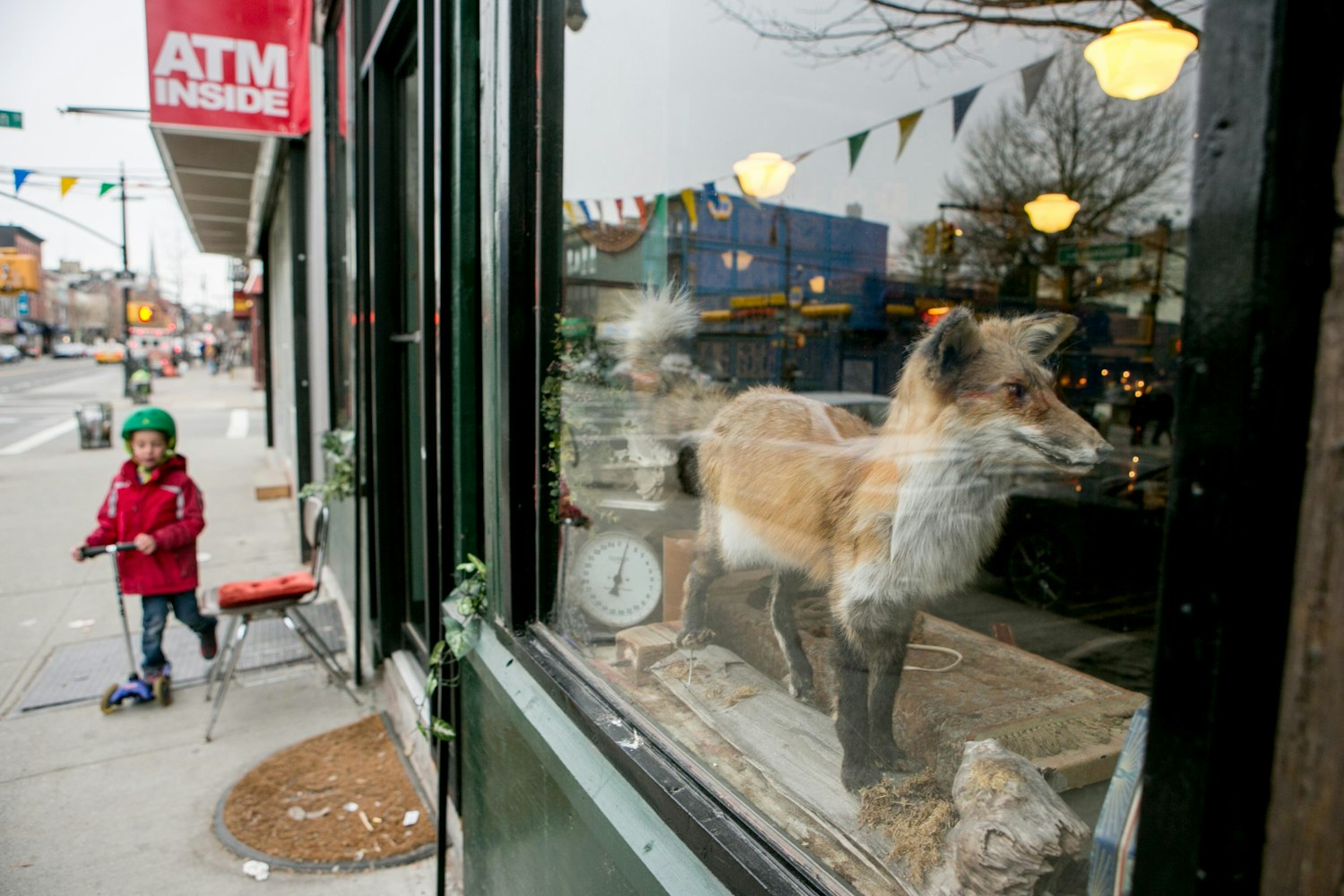 Then known as a relatively vacant manufacturing neighborhood with an open, airy view of the city, Greenpoint still retains some of that initial appeal. The streets are quiet; the graffiti is loud. Cardboard boxes, unfolded and orderly stacked, lie waiting for pick up. Taxidermied animals are scattered nonchalantly in the wide windows of a tattoo parlor. Locked bikes, their seats covered by crinkly white plastic bags, face each other outside of a bar, where a comedian, a politician and an actor all mingle a few feet away from a skee-ball machine. A dog barks — just one — and it’s quiet enough to hear him on the other end of the sidewalk.